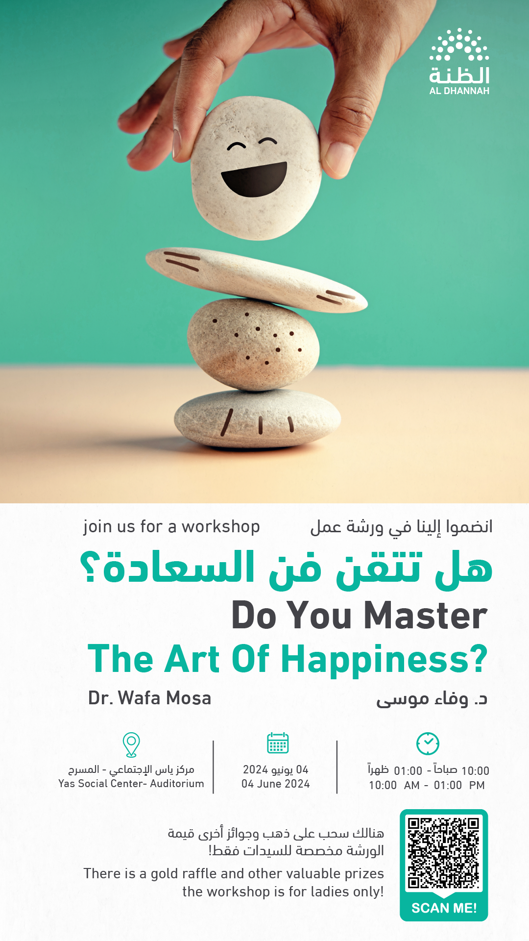 هذه دعوة مخصصة لكل السيدات للحضور والمشاركة في ورشة مميزة بعنوان "هل تتقن فن السعادة؟"