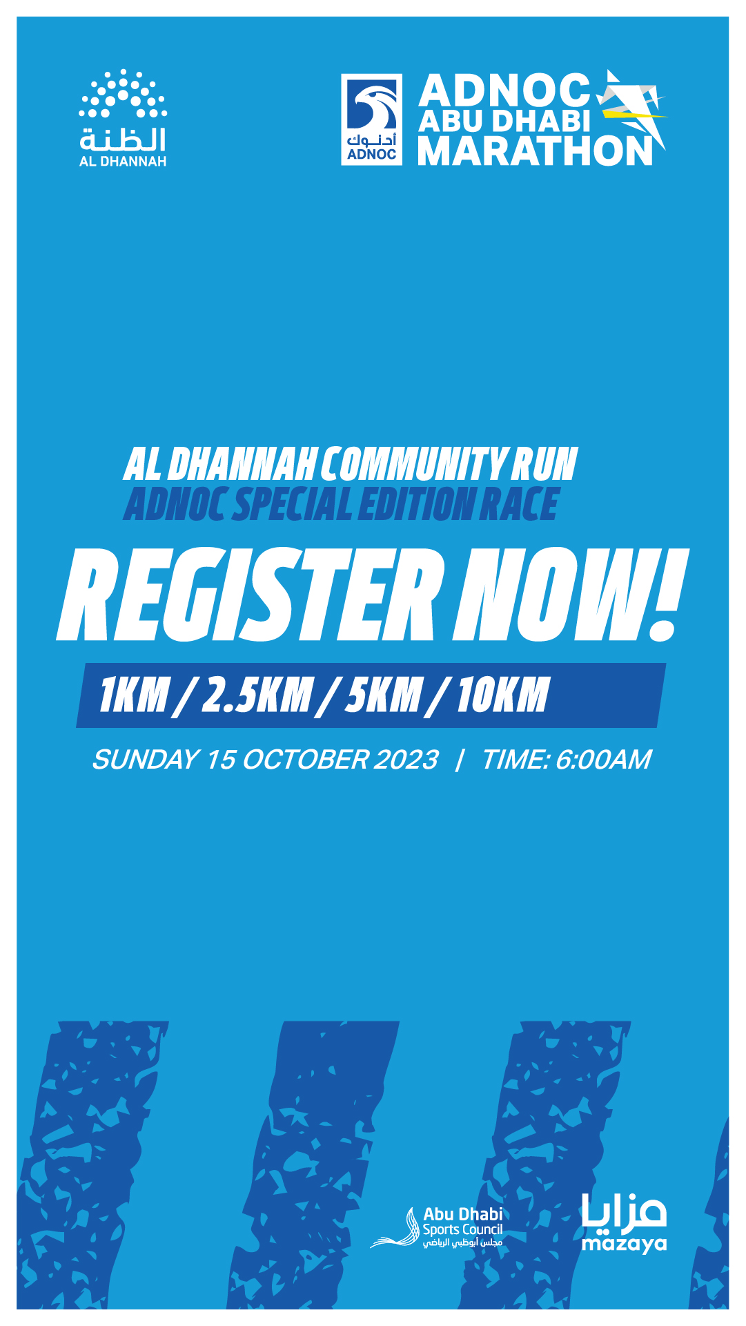 Don't miss the chance and join us on October the 15th at Central Park, Al Dhannah. You can choose from 10K, 5K, 2.5K or 1K.