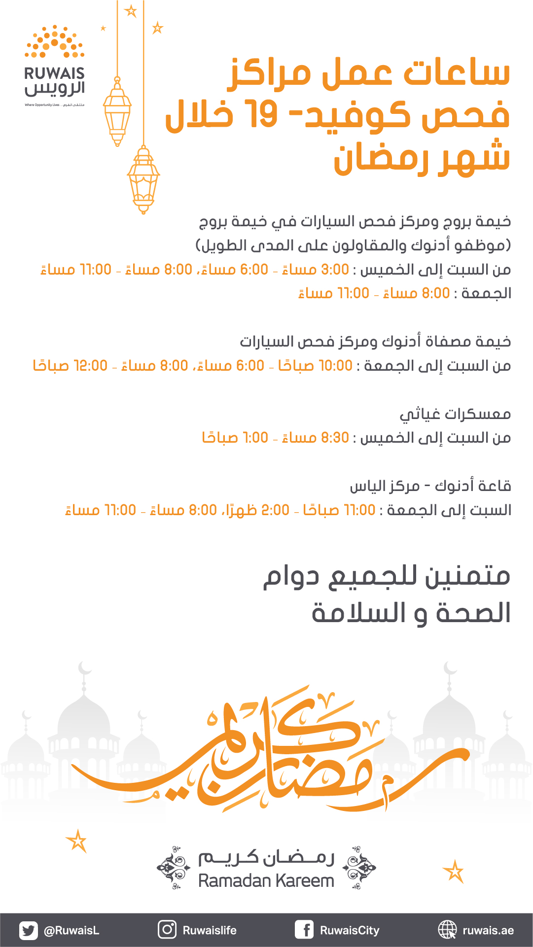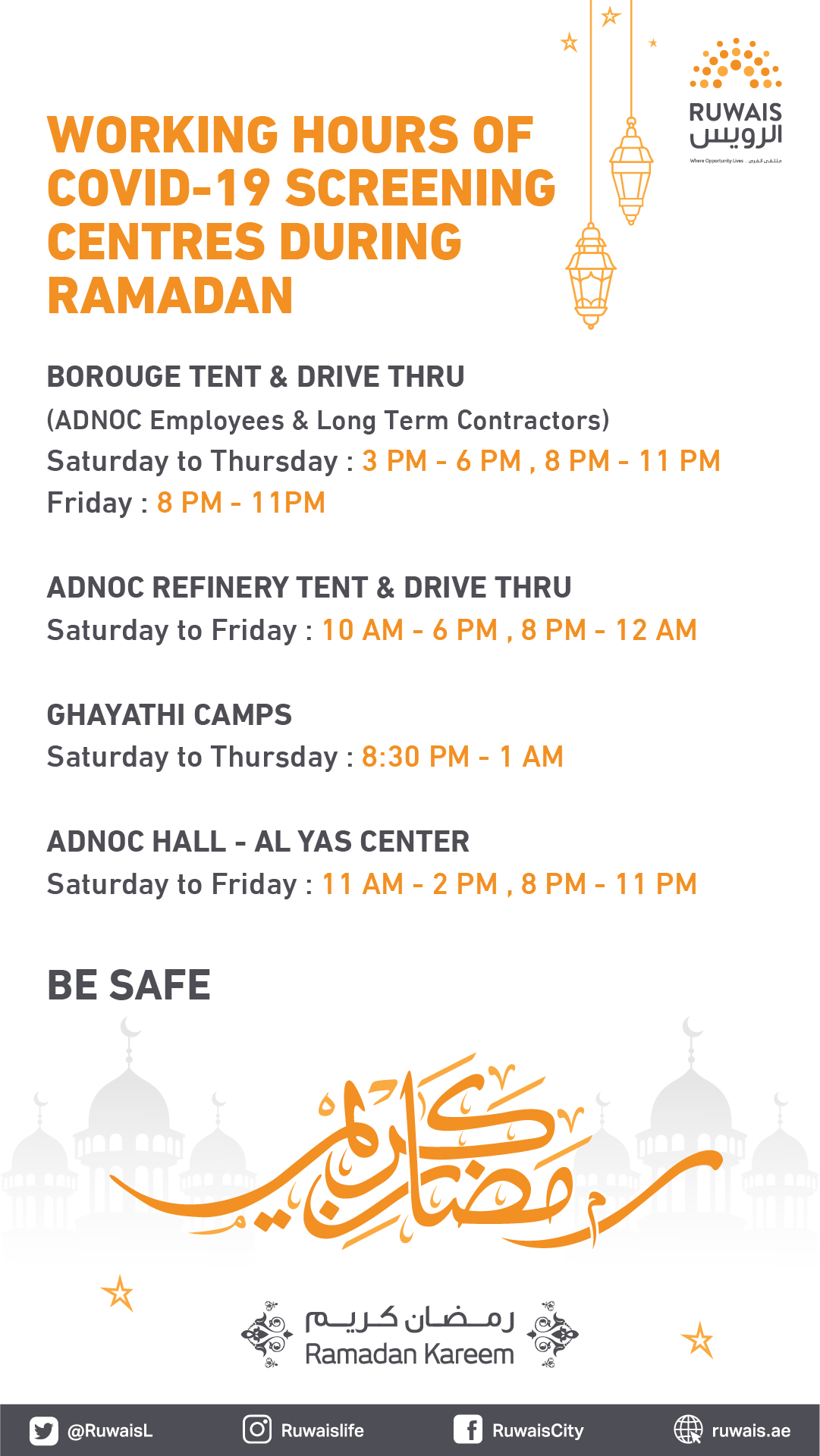 Working Hours of COVID-19 Screening Centers during Ramadan