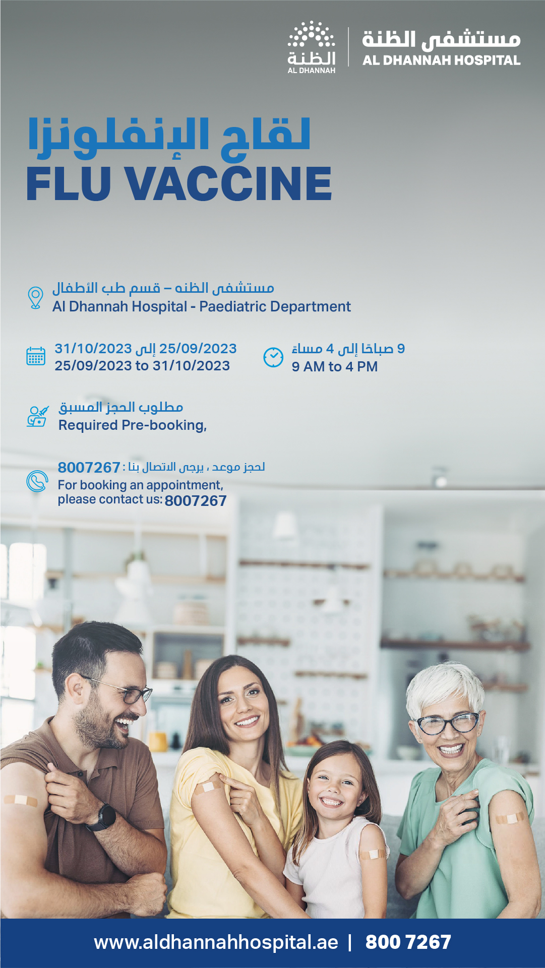 احجز موعدًا لك ولعائلتك لأخذ لقاح الإنفلونزا في مستشفى الظنة.